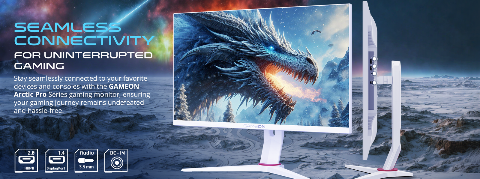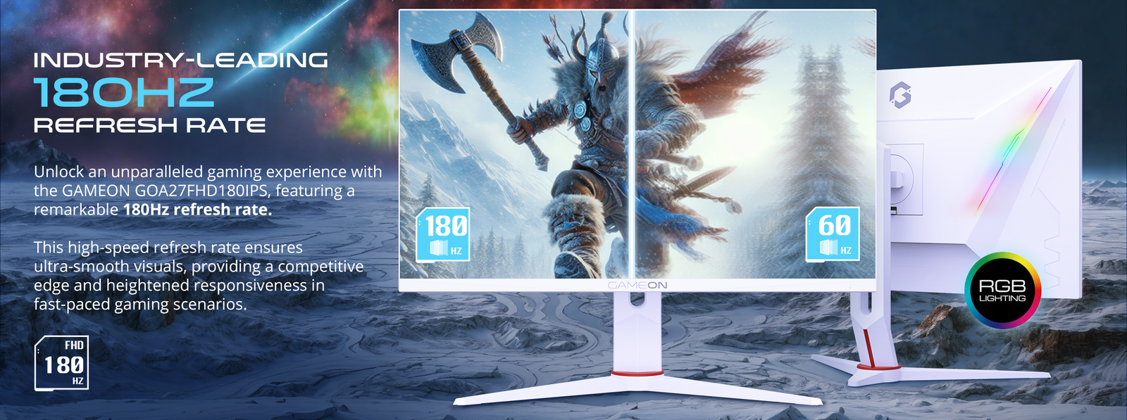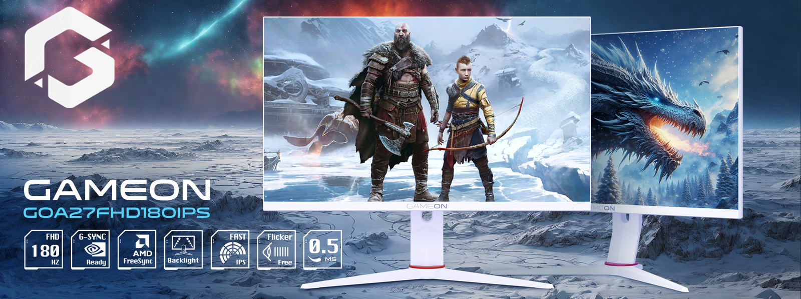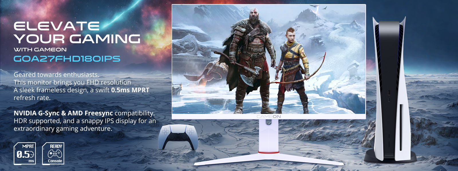 GAMEON Artic Pro Series 27″ FHD, 180Hz, MPRT 0.5ms, Fast IPS Gaming Monitor (Support PS5) – White